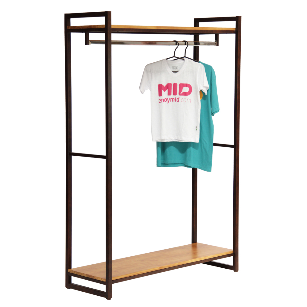 Nội Thất Gia Hưng nhận làm kệ treo quần áo khung chân sắt mặt gỗ theo yêu cầu riêng, nhận làm cho các shop thời trang tại TpHCM